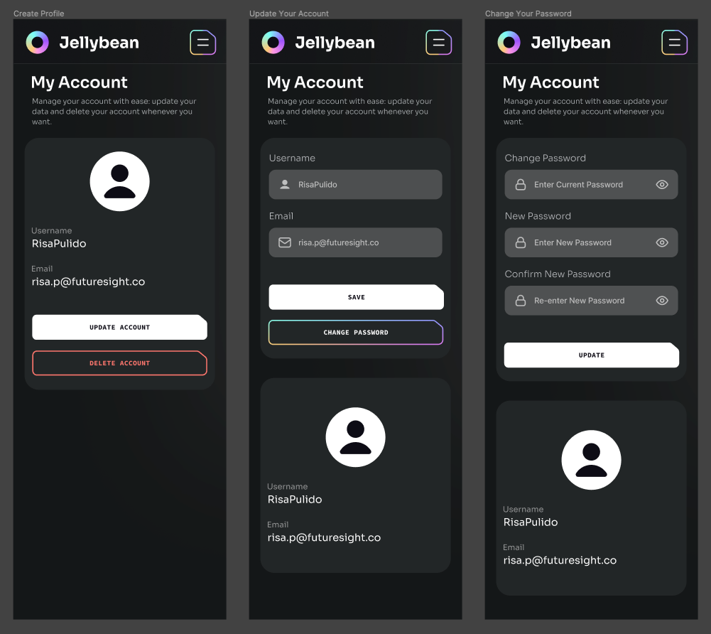 Joining the project midway, I dedicated substantial time to acquaint myself with the product and its functionality. Subsequently, I contributed to FutureSight by applying UX best practices in the design of the profile page and several subpages.